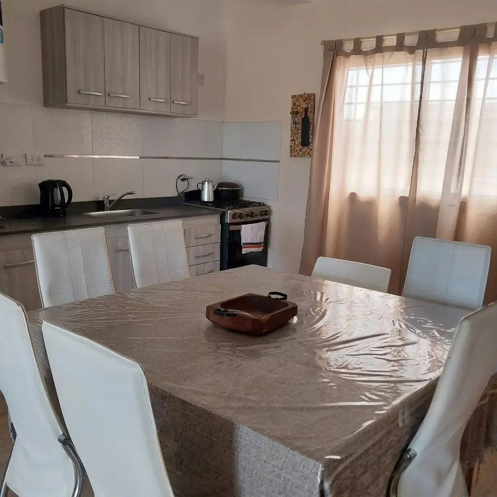 La cocina comedor de las cabañas está pensada para que no tengas que preocuparte por nada. Si querés quedarte y cocinar, podés. Si preferís ir a una de las bodegas o restaurantes cercanos, también tenés todo a mano.