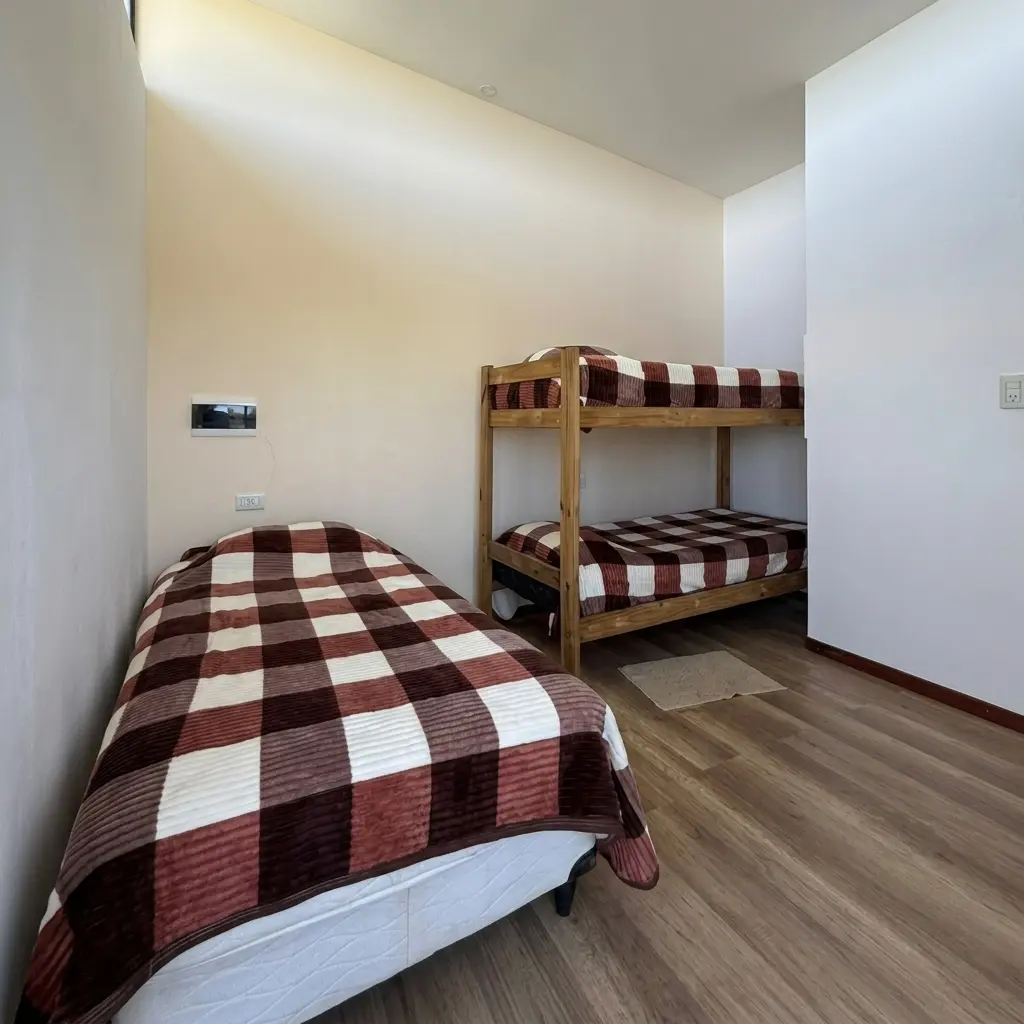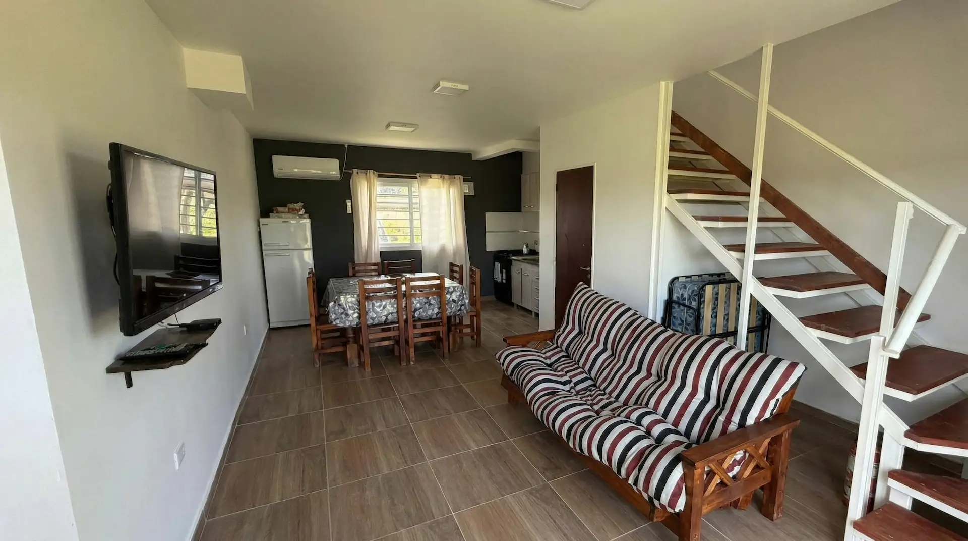 Cada cabaña del complejo fue diseñada para recibir a familias, parejas o grupos de hasta 7 personas con todo lo necesario. Dos dormitorios, cocina equipada, living comedor, baño completo, ropa blanca y acceso a pileta, parrilla y parque.