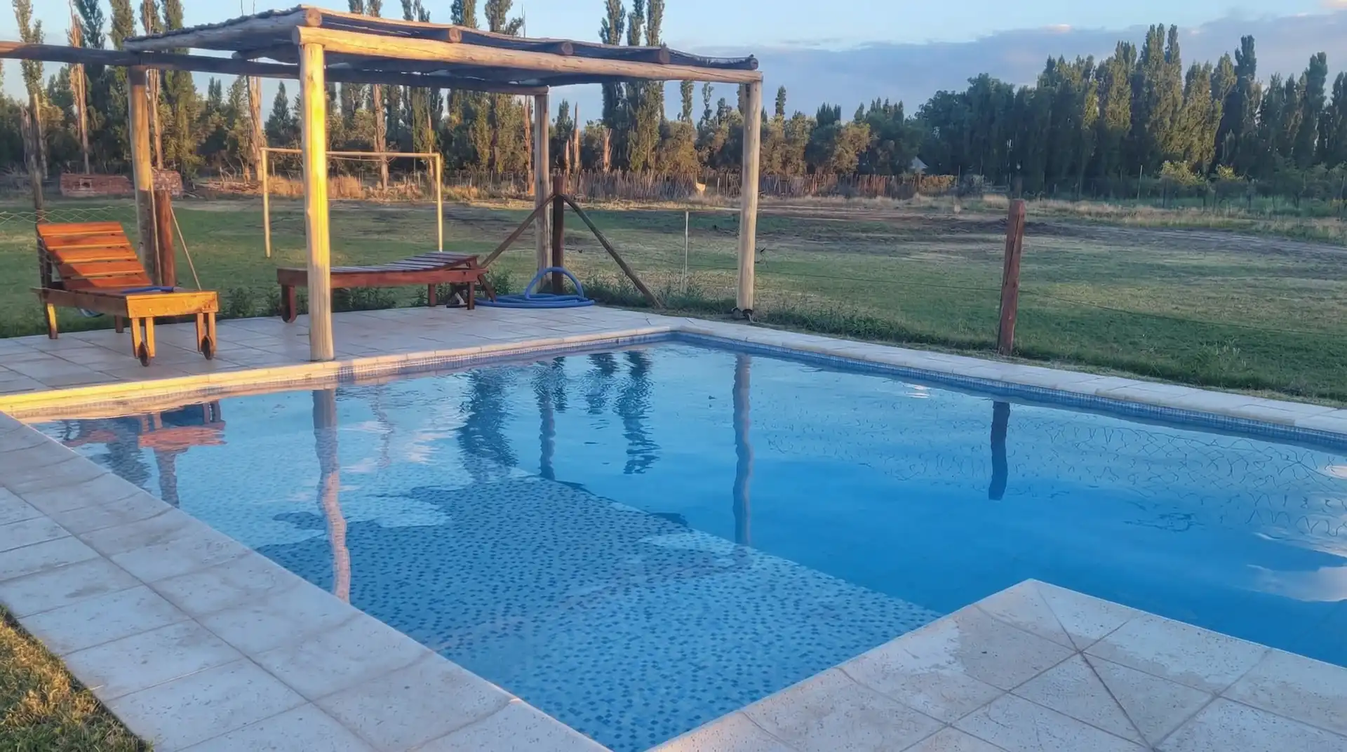 El complejo está rodeado de árboles frutales, flora nativa y fauna silvestre. Teros, pájaros y caballos son parte del paisaje.